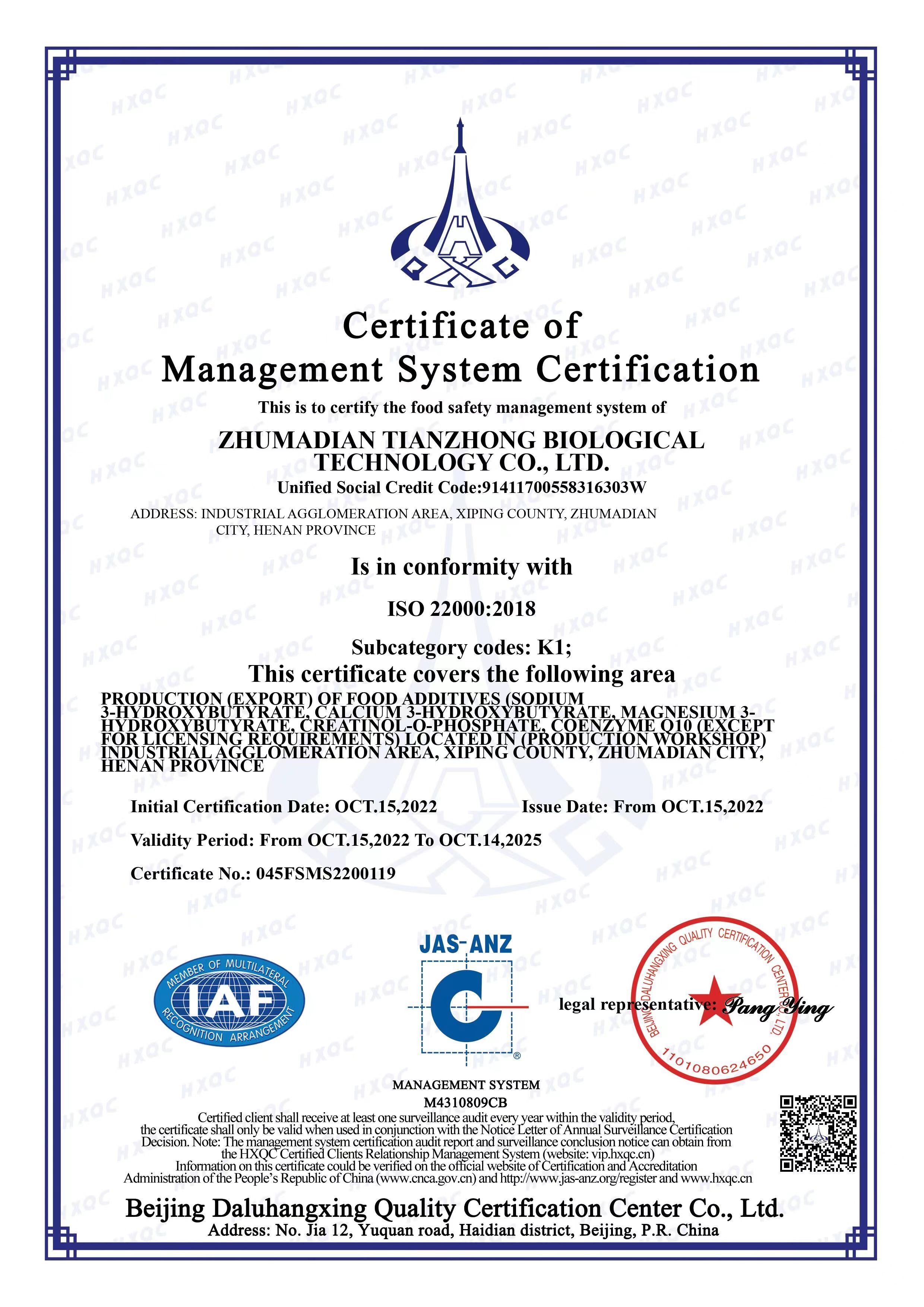 Qualification certificate